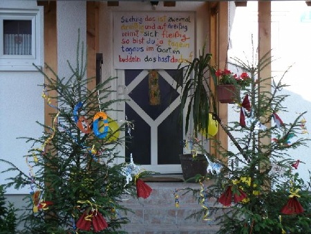 Die Nachbarn haben in der Nacht vor dem Geburtstag das Haus und den Garten geschmückt.